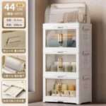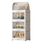 Armoire de Rangement Vaisselle Modulable 4 Niveaux – Égouttoir Anti-Poussière avec Portes Transparentes, Hauteur 100 cm