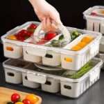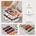 Boîte de rangement alimentaire multifonction avec compartiments amovibles, idéale pour fruits, légumes, snacks ou préparations repas. Fabriquée en PET alimentaire, elle est équipée d’un couvercle hermétique avec joint silicone et poignée centrale pour un transport facile. Design empilable, pratique pour le réfrigérateur.