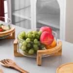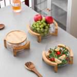 Bol en verre 3,5L avec support en bois – Saladier design élégant