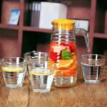 Carafe en verre 800ml avec 4 verres 230ml – Set de service à boisson élégant