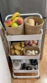 Doté de 3 paniers spacieux, ce chariot permet de stocker et organiser divers objets : ustensiles de cuisine, produits ménagers, accessoires, livres ou objets décoratifs. Sa structure en fer robuste assure une excellente stabilité, tandis que ses paniers en plastique résistants sont faciles à nettoyer.