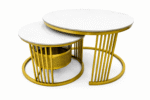 Duo de Tables Basses Rondes Design Luxe – Plateau Blanc & Structure Métal Doré