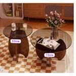 Ensemble de 2 Tables Basses Rondes en Verre avec Support en Bois Massif