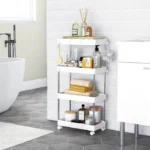 Gagnez de la place et organisez facilement votre maison avec cette étagère mobile à 4 niveaux. Compacte mais très pratique, elle est idéale pour la cuisine, la salle de bain, la buanderie ou même le salon.