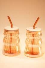 Gobelet en Verre Ambré avec Couvercle & Paille
