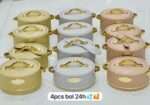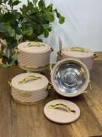 Ensemble élégant de bols isothermes conçus pour conserver vos plats chauds ou froids jusqu’à 24 heures. Chaque bol est doté d’un intérieur en inox pour une meilleure conservation thermique et d’un extérieur décoratif matelassé avec finitions dorées. Idéal pour le service à table, les repas en famille ou lors de réceptions. Les couvercles assurent une fermeture efficace et les poignées latérales facilitent la manipulation. Convient parfaitement pour le riz, sauces, soupes, plats mijotés ou accompagnements.