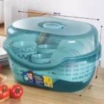 Le panier intérieur dispose de nombreuses perforations permettant à l’eau de s’écouler dans la base. Cela permet de sécher rapidement les objets placés à l’intérieur.