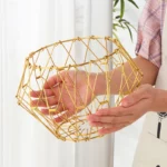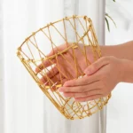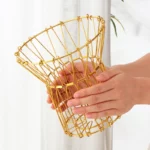 - Le panier à fruits modulable est fabriqué en fil de métal doré, lui donnant une allure élégante et moderne.
