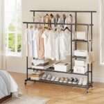 Penderie à vêtements avec roulettes – Portant double barre avec étagères grande capacité