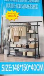 Grâce à sa double barre, vous pouvez suspendre un grand nombre d’habits sans les froisser. Les étagères intégrées permettent de ranger chaussures, sacs et accessoires pour un rangement complet.