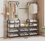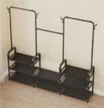 Penderie Double avec Étagères – Portant à Vêtements + Range-Chaussures 2 Niveaux