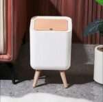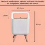 Avec son style minimaliste, ses pieds effet bois et son couvercle raffiné, cette poubelle s’intègre parfaitement dans tout type de décoration.