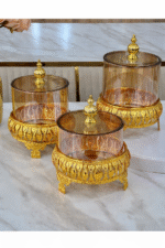 Set de 3 bocaux de rangement en verre avec support doré – 1000ml, 1200ml et 1500ml