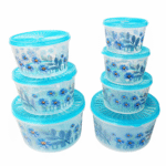 Set de 7 Boîtes de Conservation Rondes avec Couvercles – Récipients Alimentaires Fleuris